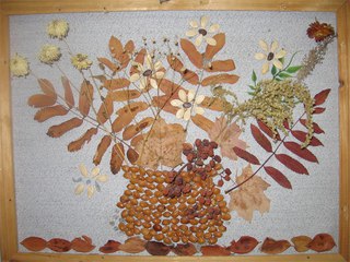 Панно из осенних листьев и других природных материалов