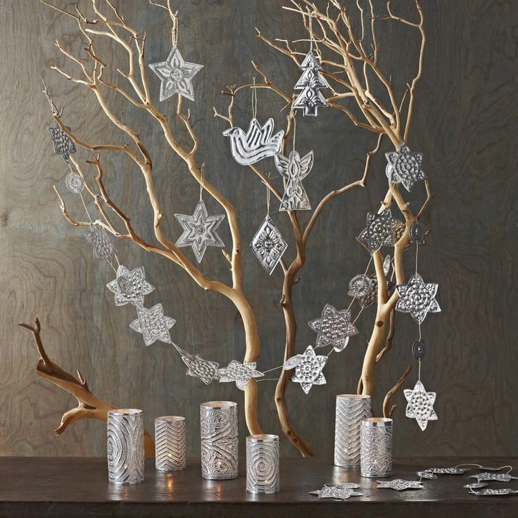 Итак, вы не можете ухаживать за комнатными растениями и не хотите тратиться на искусственные растения. Решение? Поставьте ветку в кашпо, покрасьте ее в белый цвет и повесьте звезды на ее руках. Завораживающе!