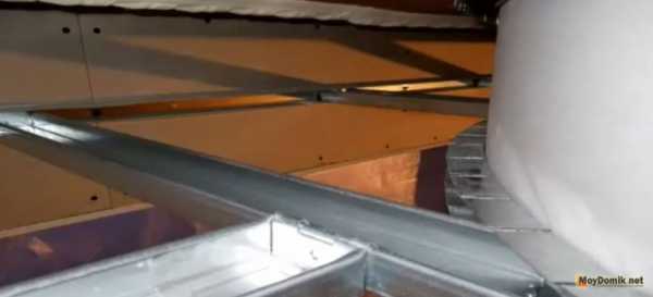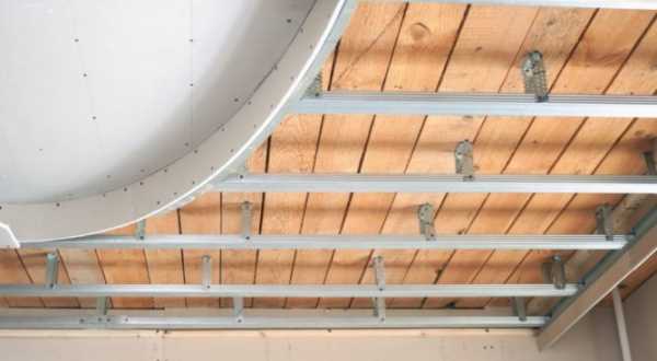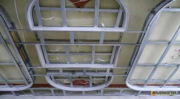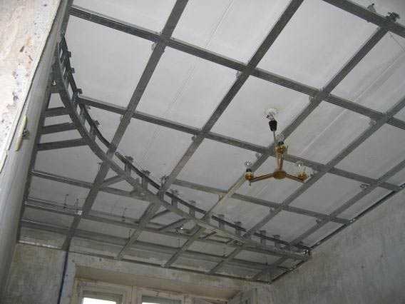 Есть и альтернативный способ. На потолке сооружают каркас из двух уровней и только после этого переходят к его отделке. Первый вариант более простой в реализации, требует меньше опыта и навыков, поэтому именно им пользуются чаще всего.