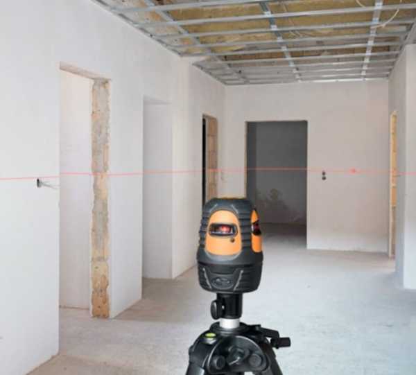 Среди них отмечают самый низкий по высоте угол, условно принимая его за начало разметки. Только в этом случае получится смонтировать каркас, идеально ровный относительно горизонтальной поверхности.