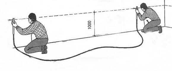 Ориентировочную сетку на поверхности готовят, начиная с замеров высоты углов в помещении.