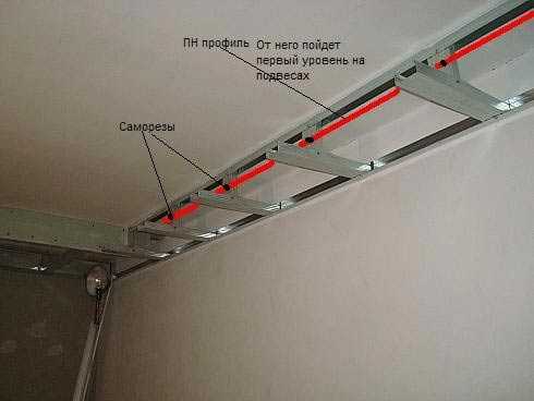 Монтаж 1 яруса двухуровневого потолка из гипсокартона своими руками