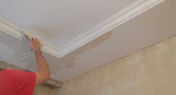 Пример заделки стыков двухуровневого потолка