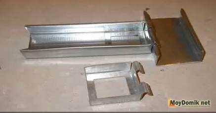 Аналогичной длины и таким же способом, по уровню, в противоположном углу комнаты закрепляется вторая заготовка. После этого между заготовками натягивается капроновая нить, ориентируясь по которой крепят все несущие короткие профили второго яруса. Надо сказать, что если глубина полки между 1 и 2 ярусом более 20 см, то горизонтальный несущий профиль из второго яруса крепят к профилю из первого яруса не отвесами, а самодельными стойками. Такие стойки изготавливаются из обрезка несущего профиля. В обрезке необходимо выпилить на глубину в 20 мм с двух сторон заднее основание.