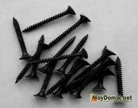 - Саморезы применяют для гипсокартона черные с длиной 20 мм, а для металлических деталей мелкие клопы.
