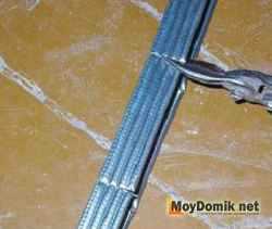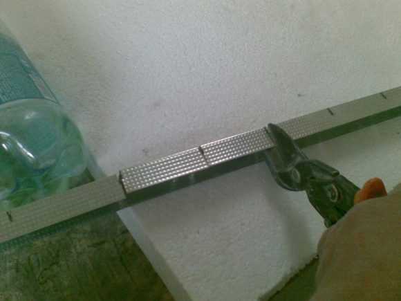 После проделанной работы необходимо использовать ножницы по металлу. Ими делаются небольшие надрезы через каждые 3 см. Это нужно для того, чтобы профиль можно было накрутить по полуокружности, после чего – зафиксировать по заранее нанесенной разметке.