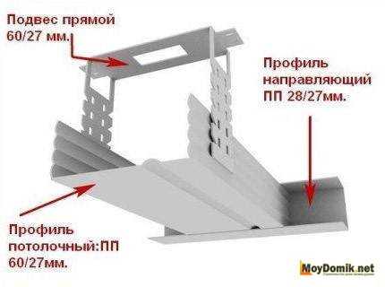- Металлический несущий потолочный профиль (ПП) 60х27 мм;