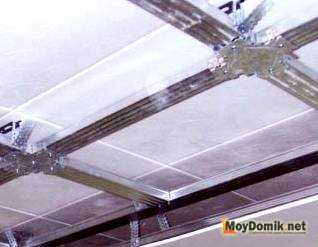 Надежно зафиксированные подвесы послужат основной для крепления профилей CD. Чтобы скрепить конструкцию их просто вставляют в основной уже смонтированный профиль на стене.