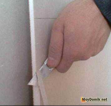 Неровности на кромках среза подравнивают ножом или рубанком, убирая лишний гипсовый наполнитель.