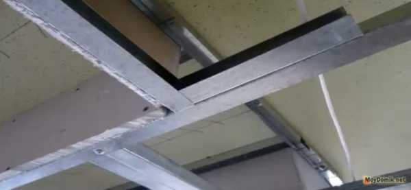 - Если высота потолка будет значительной, то к закрепленному на потолке направляющему фиксируют нарезанные по размерам стойки.