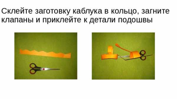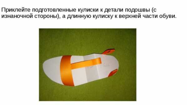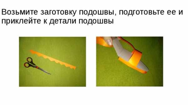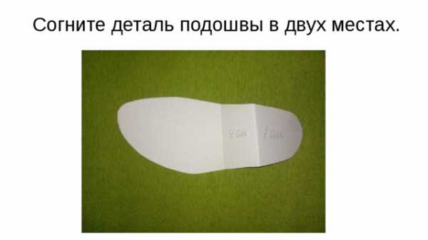Вырежьте деталь подошву(из картона) и остальные детали (из бумаги).