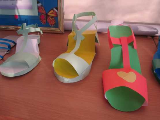 — Из какого материала? (подошва из картона, а верхняя часть из цветной бумаги).