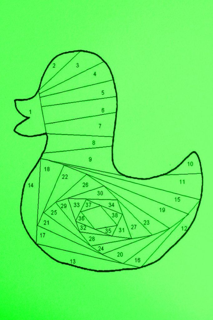 бумажные полоски, вы следуете числам, чтобы создать изогнутые цветные блоки.Обычно