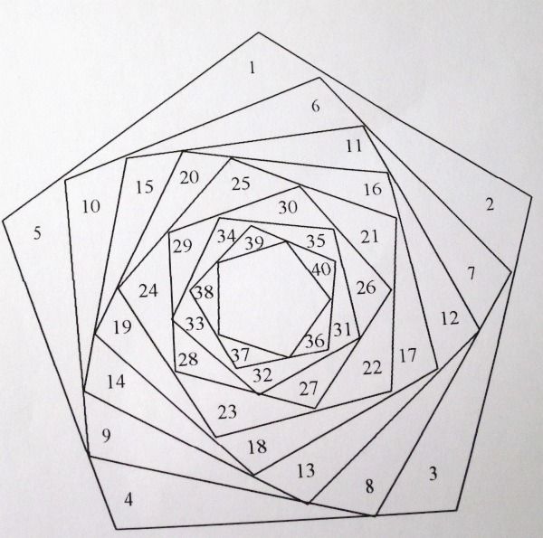 Продолжаем нумерацию получившихся фигурок в направлении «закручивания» будущей спирали.