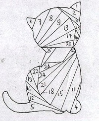 - Полоски бумаги или ткани наклеиваются строго в определенном порядке по заранее составленному шаблону.