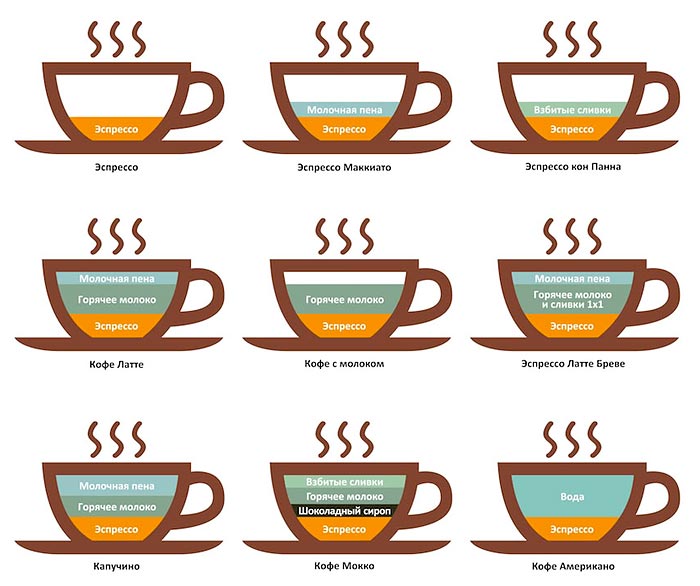 — часть воды для разбавления эспрессо заменяют молоком.