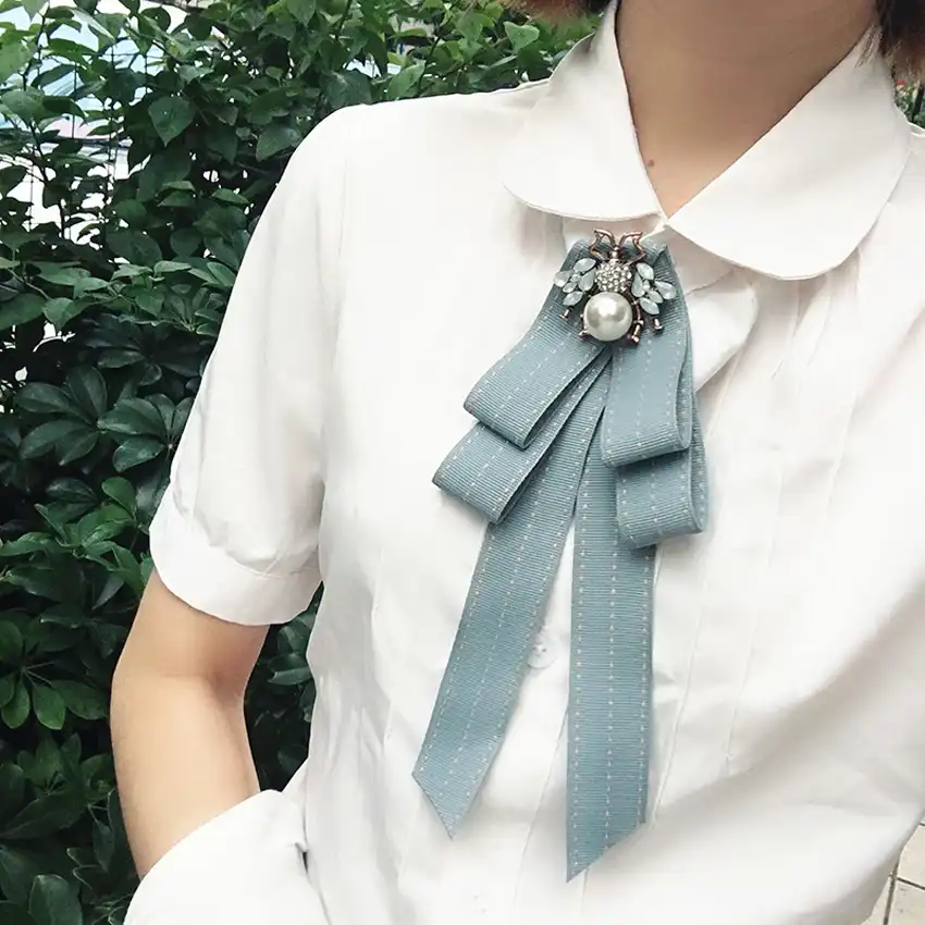На воротнике бант выглядит очень эффектно, заметен издалека и становится акцентом образа, особенно если элемент контрастный.