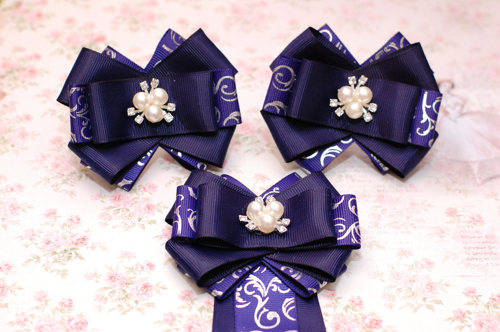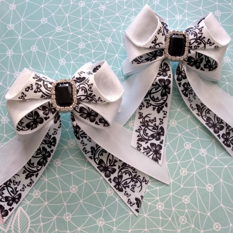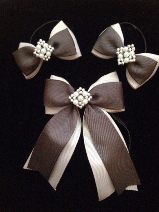 - Готовый бант разгладить, концы ленты расправить, можно спрятать их внутри петель банта.