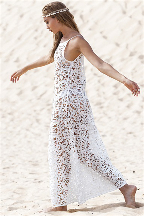 Нам пришлось сшить еще одно кружевное пляжное платье, потому что оно может быть даже более лестным, чем первое. Я бы также назвал это белым платьем крючком, потому что оно выглядит так. Любой из них будет отлично смотреться с сандалиями на плоской подошве или с каблуком.