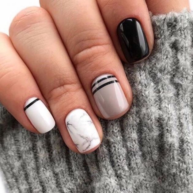 - Черно-белый маникюр на коротких ногтях: идеи и фото