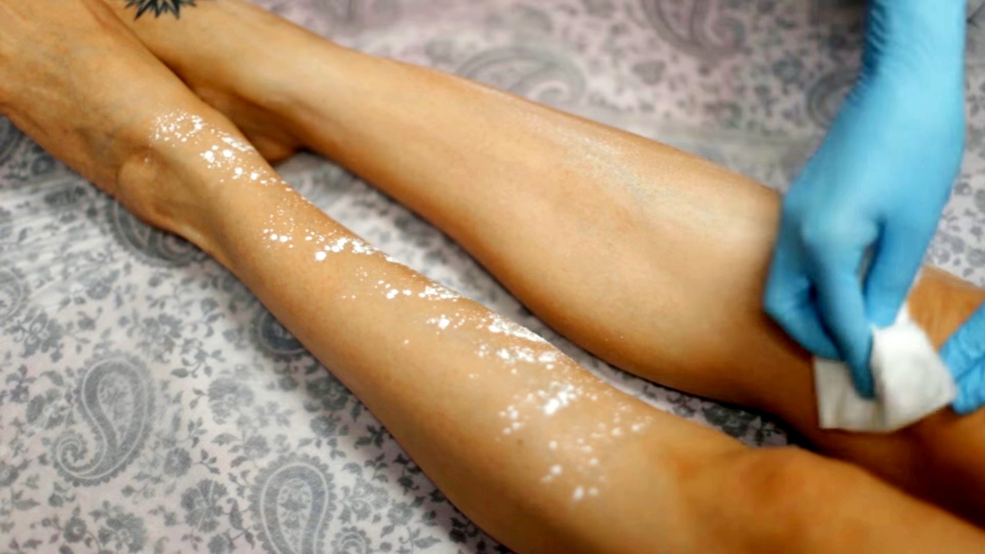 За два дня до процедуры необходимо обработать нужные места скрабом, чтобы убрать ороговевшие клетки.