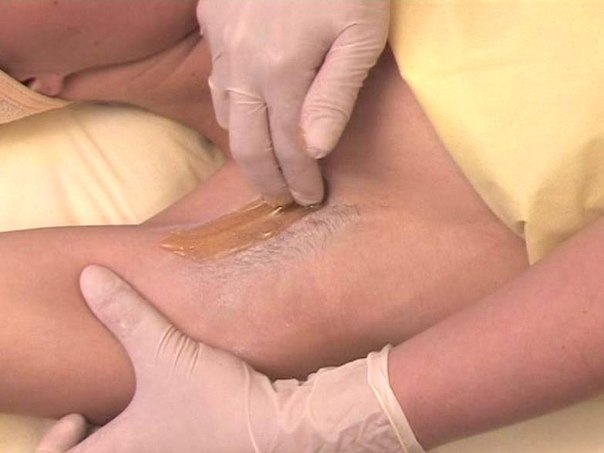 Этот метод можно использовать на всех участках тела. Для депиляции ног и рук мастер наносит пальцами пасту в форме полосы и снимает ее за несколько рывков. Удаление волос с чувствительных участков тела требует большого мастерства. В этом случае косметолог поочередно обрабатывает небольшие участки тела.