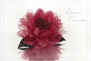 Данное ранее пошаговое пояснение выполнения цветов канзаши из лент для начинающих мастеров поможет в создании такого крупного и пышного цветка. Это нарядный вариант, который можно использовать даже вместо банта. Делать его легко, так как принцип работы читателю уже ясен. Единственное, чем отличается такая поделка от предыдущей, — это соединением вместе нескольких плоских деталей разного размера. Нижнюю часть делают из длинных отрезков, среднюю — из более коротких, а верхний цветок должен быть самым маленьким.