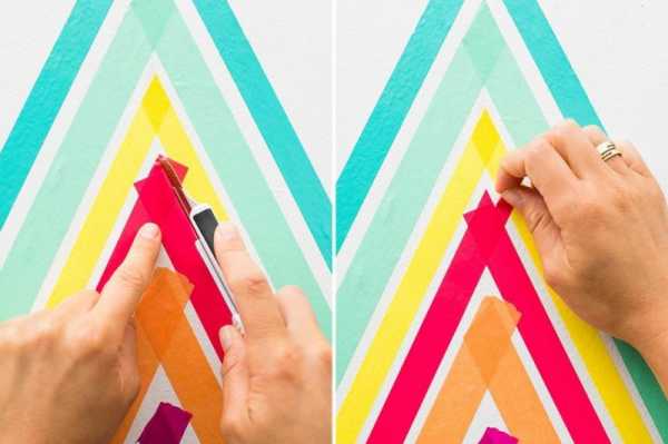 Вам понадобится множество цветного скотча и ножницы. Создать различные композиции с ним очень просто – достаточно отрезать части нужного размера и формы и приклеить к самым разным предметам – зеркальным рамам, стульям или столам и даже к стене.