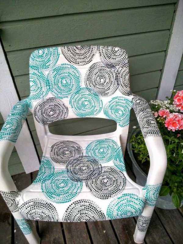 Изменить общий вид мебели можно и с помощью красивой фактурной ткани. Старый стул можно обтянуть яркой тканью с оригинальным рисунком и отделать по краям декоративным шнуром. Ножки и спинку покрасить акриловой краской и расписать поверхность интересным рисунком. Совершенно новая, креативная вещь в доме, не сможет не обратить на себя внимания ваших гостей. Учтите, ткань для обивки, должна гармонировать с общим интерьером помещения, тогда декор действительно будет удачным.
