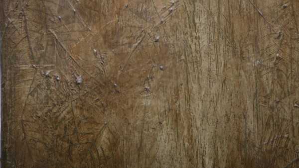 Гораздо сложнее покраска с размывкой. Суть её в том, что на фон накладывается ещё один дополнительной слой краски (потемнее). Ему даётся немного времени для подсыхания, после чего он безжалостно вытирается мокрой тряпкой, сохраняясь после этого только в углублениях. Сама технология очень проста, но требует больших временных и физических затрат. Зато в этом случае легче контролировать результат. Если где-то вытерли больше, чем нужно, можно заново закрасить и снова вытереть. Вот пример, где в качестве фона использовался белый цвет, а в качестве заполнителя – «омлетный»: