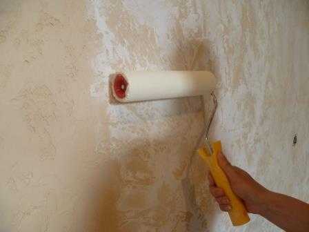 Оба типа окраски предполагают первоначальное нанесение фонового цвета, желательно в два слоя. Для этого используется обычный валик с длинным ворсом. Следует учесть, что, раз уж поверхность фактурная, расход краски будет немалым. Для покраски фона под размывку нужно выбирать хорошую стойкую краску, устойчивую к мытью. Для техники «сухая кисть» пойдёт любая. Важно не перегибать палку со слоем краски — слишком жирные слои могут сказаться на выраженности фактуры. Кстати разница между дорогими и дешевыми красками расписана у нас в отдельной статье.