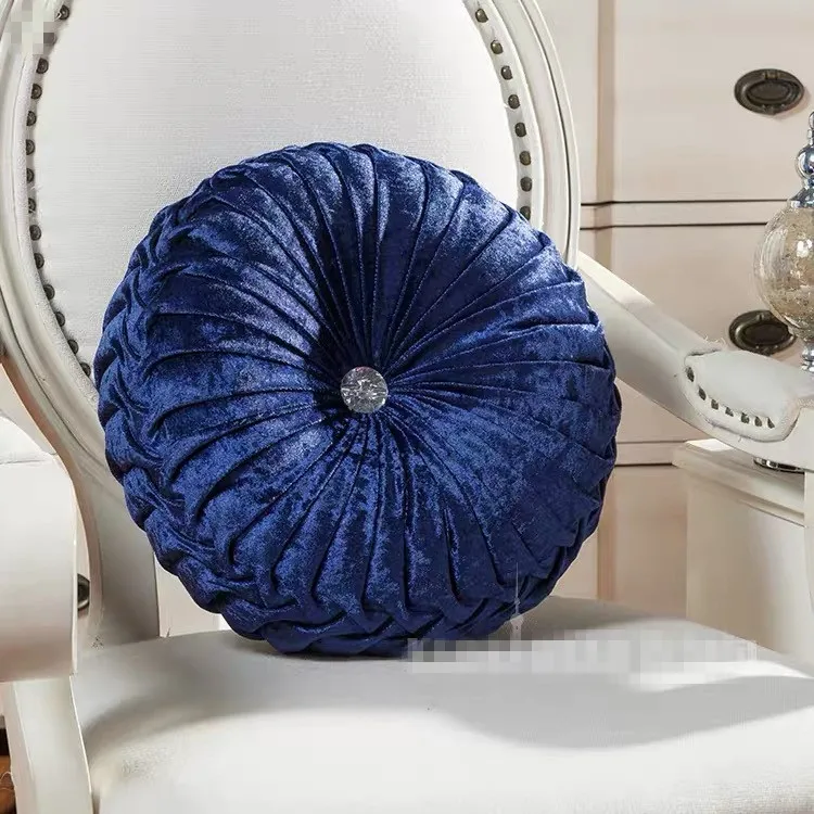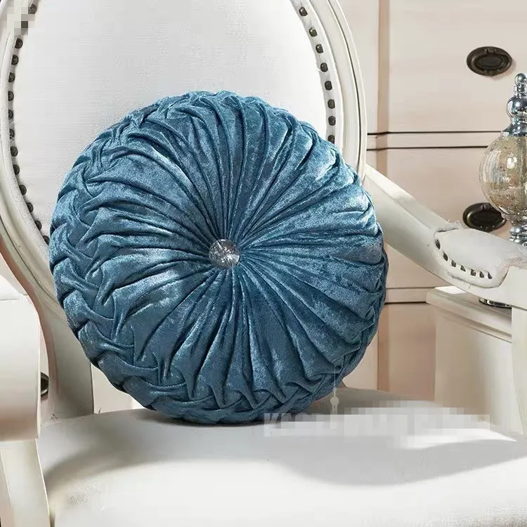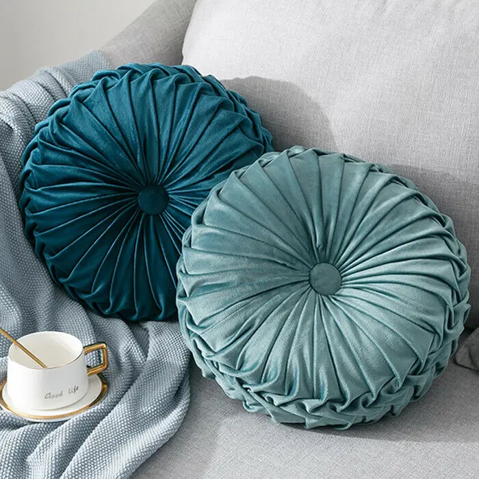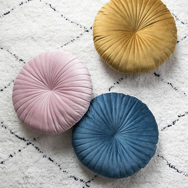 Круглая плиссированная мягкая бархатная декоративная подушка в настоящее время предлагается в различных цветах, что позволяет легко сочетать ее с вашим домашним декором.