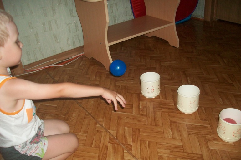 Поместите линию клейкой ленты на стартовой линии. Используйте картонные коробки в качестве бамперов. Берите мяч среднего размера и начинайте играть в боулинг! Если хотите, ведите счет и раздавайте трофеи в конце.