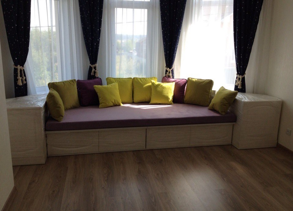 Однако учитывая тот факт, что эркерные выступы зачастую нестандартны, диваны для их обустройства приходится не покупать, а заказывать по индивидуальным замерам.