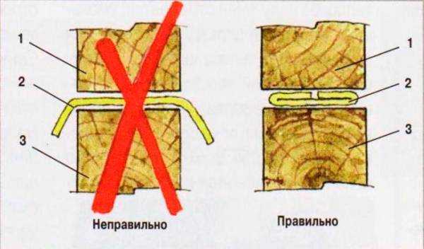 - Между пазами пиломатериала укладывается уплотнитель – джутовый войлок.