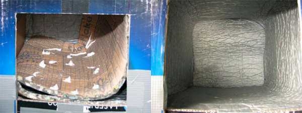 - Теперь потребуется водоотталкивающий материал, чтобы обшить им домик изнутри. Стоит уделить особое внимание стыкам коробки.