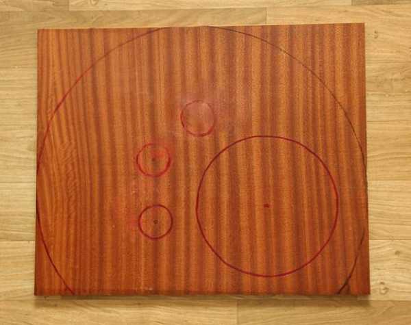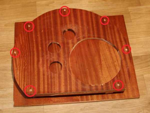 - В куске ДВП проделывается отверстие под трубу. Он будет присоединяться к основанию.