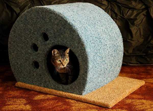 Для большинства животных подойдёт форма коробки, но, например, сиамские и бенгальские кошки предпочитают нечто вытянутое вверх. Для них можно создать дом цилиндрической формы, например – в виде имитации ствола дерева.