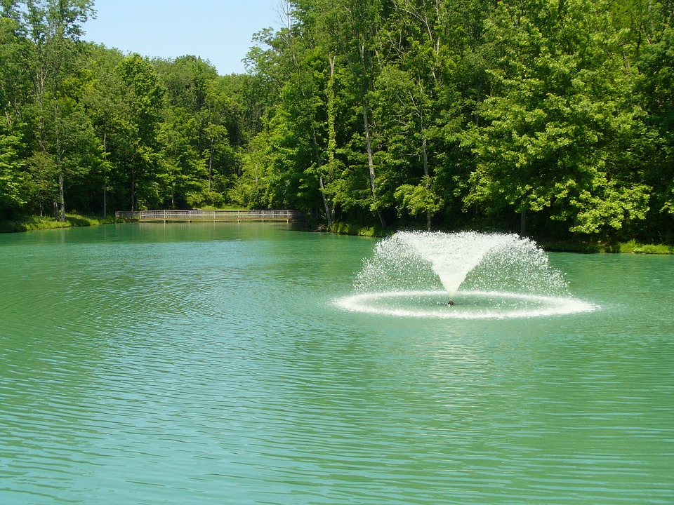 - Движение воды в водоеме. Основной проблемой закрытых водоемов является отсутствие движения воды. В таких случаях водоем быстро загрязняется водорослями, листьями или мелким мусором. Такие загрязнения тяжело убрать. Благодаря циркуляции воды создаваемой плавающим фонтаном вода в пруду не зацветает, а водоросли которые присутствовали в водоеме до установки фонтана прибиваются к берегу где их можно легко убрать. Все это способствует улучшению биобаланса пруда.