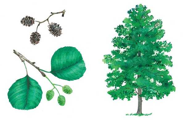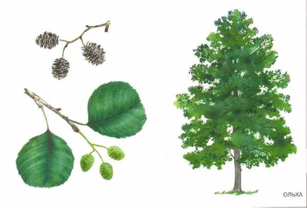 Деревья: береза, клен, каштан, липа, рябина, тополь, осина, дуб, ясень, вяз, ольха, ива, ель, сосна, лиственница, яблоня.