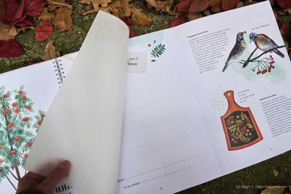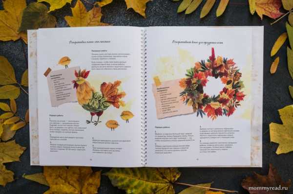 В конце книги на нескольких разворотах есть идеи для поделок с осенними листьями! В этом году у нас постоянно льют дожди, поэтому венки и розы из листьев оставим до следующего года)