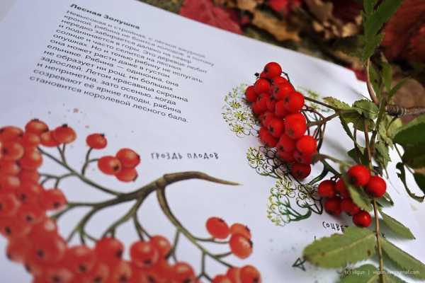 Рябина. Мне нравится, что в книге ребенок видит и листья, и плоды, и цветы, и само дерево. Правда, Леше в голову пришло осенью искать на деревьях цветы)