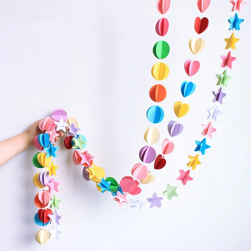 Такими гирляндами можно украсить что угодно — стену, стол, зону фотосессии. Можно комбинировать разные цвета: пастельные, яркие, контрастные. Бумажные гирлянды — это изысканность, стиль и, конечно же, атмосфера праздника. Твои дети оценят эту яркую находку по достоинству!