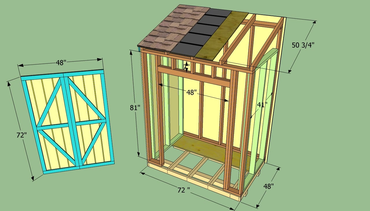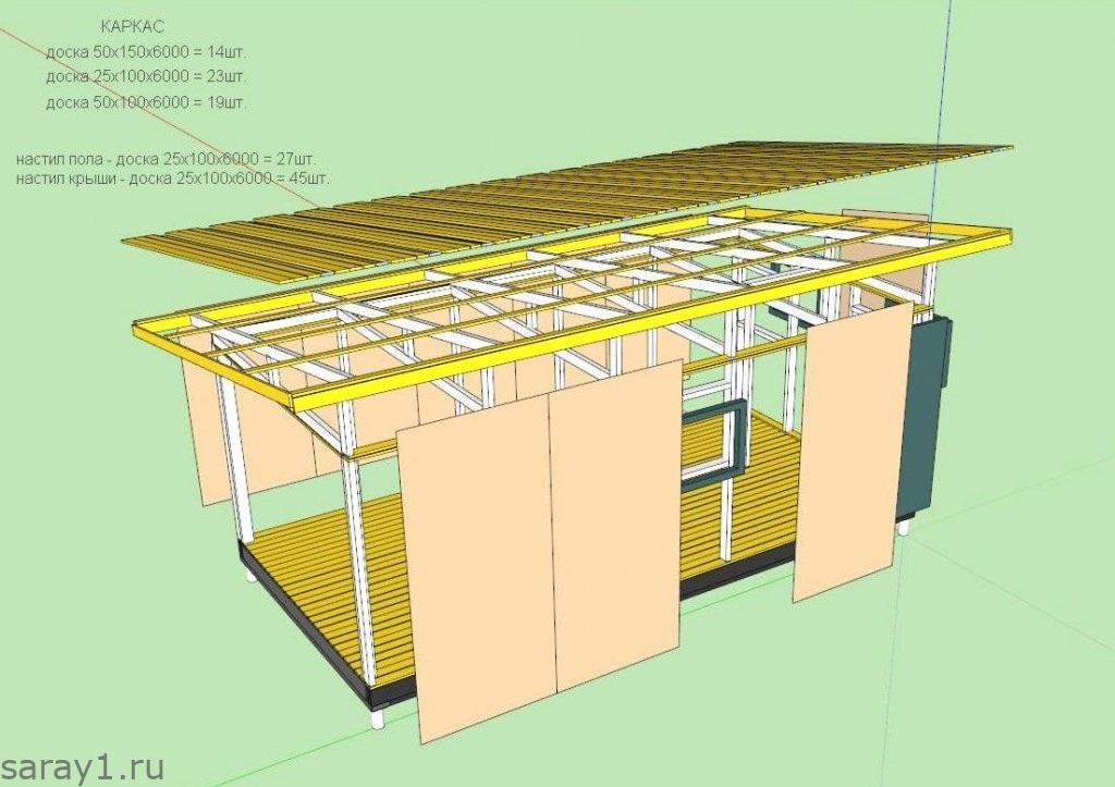 Удобно выполнить укладку каркасного бруса разной длины, как показано на видео хозблока своими руками — на лицевую сторону длиной 3000, на заднюю сторону длиной 2400 миллиметров, тем самым вы существенно упростите процедуру изготовления стропил односкатной кровли.