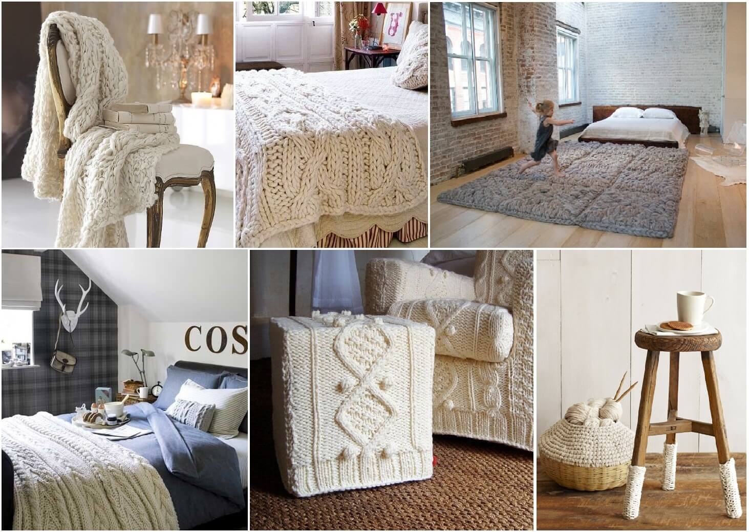 - связанные, вышитые пледы, декоративные подушки, нарядные наволочки;