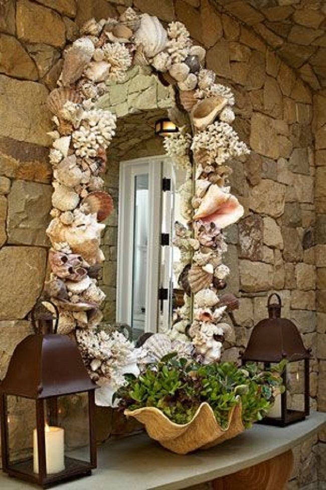 Рамки для фото, зеркал, рисунков можно сделать самостоятельно, из прищепок, реек, веточек, палочек, шнура или каната. Декорируют рамки камешками, ракушками, стеклом, блестками, красками или лаком.