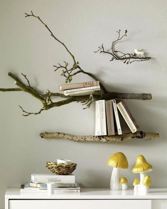 С помощью пилы выровняйте поверхность, покройте ее лаком. С помощью дрели, которую можно одолжить у соседей, просверлите две дырки по краям. После этого, используйте подходящую по цвету веревку. Сыграйте на контрасте красок: сочетайте несочетаемое. Осталось вбить гвоздь в стену или вкрутить в потолок крючок, чтобы было, на что вешать — и полка готова.