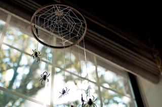 Дома разместите паутины на зеркало, стол, диван, окно. Не ограничивайте фантазию!