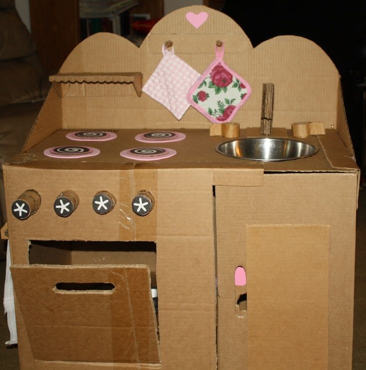 Ну конечно же это разнообразные домики и замки, в которых они могут уединиться или поселить туда свои многочисленные игрушки. А еще вы можете сделать кухню из картона — мечта каждой юной хозяйки.