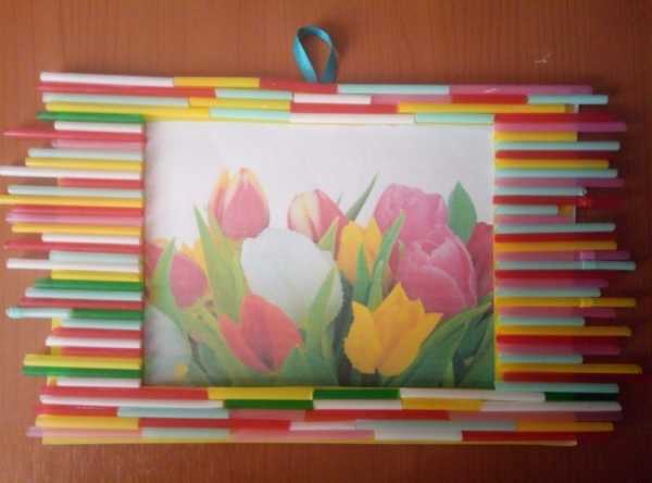 Предлагаю сделать креативную рамку для фотографий в технике плетения из трубочек для коктейля. Старайтесь быть особенно аккуратными, точными и не бойтесь проявлять фантазию.